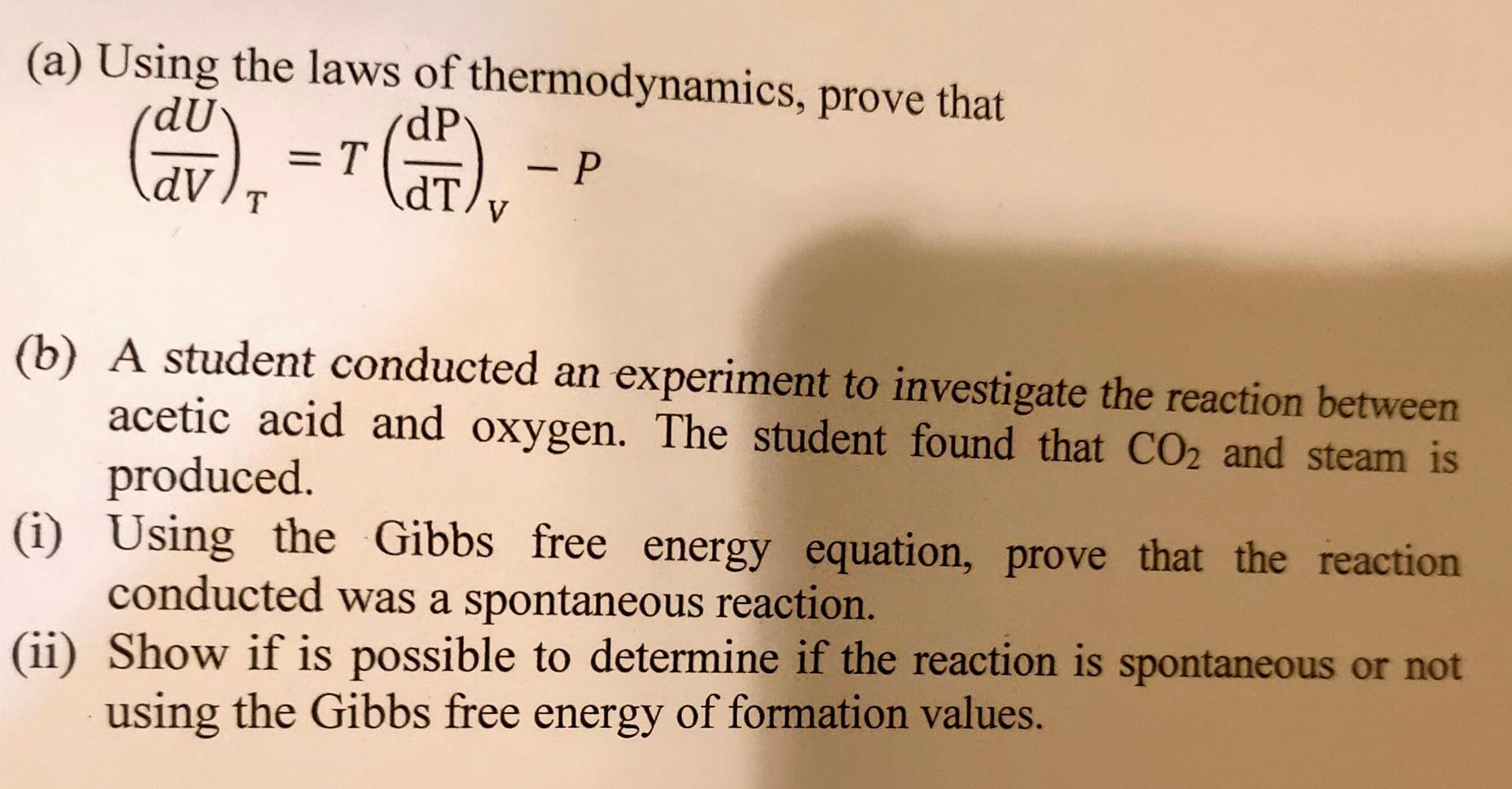 Solved A Using The Laws Of Thermodynamics Prove That Du Chegg Com